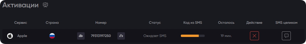 Все онлайн-номера для Apple, независимо от страны, в которой зарегистрирована облачная АТС, активируются ровно на 20 минут. Это позволяет создавать профиль без спешки, запрашивать новые коды в случае сбоев или неполадок в интернете. При этом количество новых запросов для данного ресурса не ограничено. Но, в большинстве случаев, регистрация проходит с первого же кода, без сбоев и проблем.