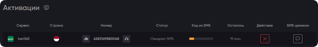 Любой онлайн-номер для bet365 выдается на 20 минут, что дает возможность пройти регистрацию на сайте или в приложении без ненужной спешки. Более того, количество СМС-ок, которые можно получить на данный телефон ограничено лишь временем аренды.