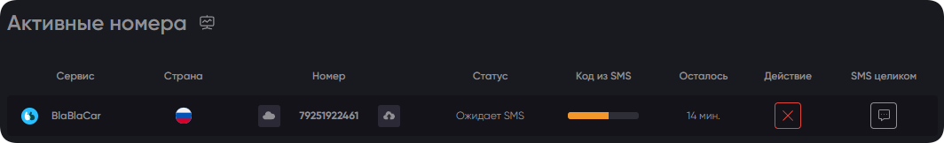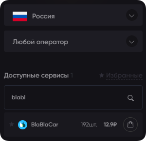 Одноразовые номера телефонов для BlaBlaCar – это безопасно, выгодно и удобно. Вы можете приобретать их оптом, с невероятными скидками в 80%. А также пользоваться встроенным протоколом API, позволяющим автоматизировать процесс получения сообщений и активации кодов.