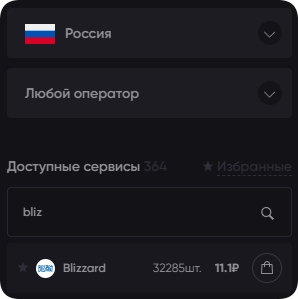 В перечне доступных веб-ресурсов найдите Blizzard. Затем выберите подходящую страну, не ограниченную санкциями со стороны американской компании. Убедитесь, что есть свободные номера и цена вас устраивает.