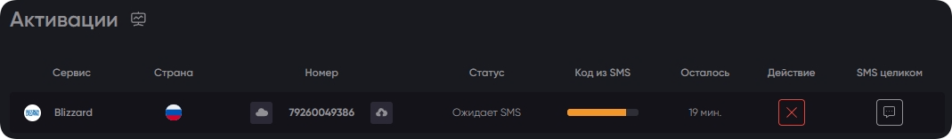 Наши клиенты арендуют виртуальные номера для Blizzard и других веб-ресурсов на 20 минут. Этого времени хватает, чтобы без спешки пройти процедуру регистрации, повторить запрос на СМС-код в случае сбоя. Более того, количество последующих запросов ограничено лишь временем аренды.