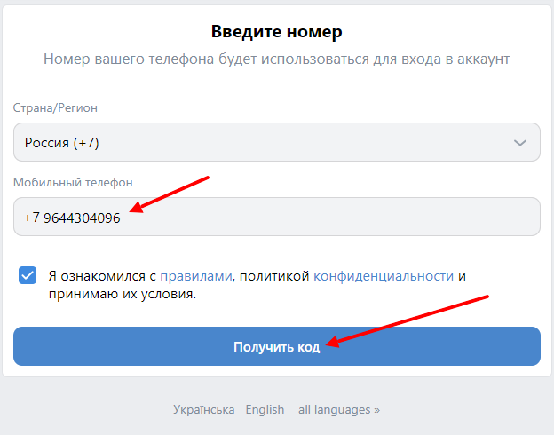 Вставляю полученный номер в нужное поле и запрашиваю код