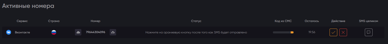 Перехожу ко вкладке активных номеров и жму на кнопку "Готов!"