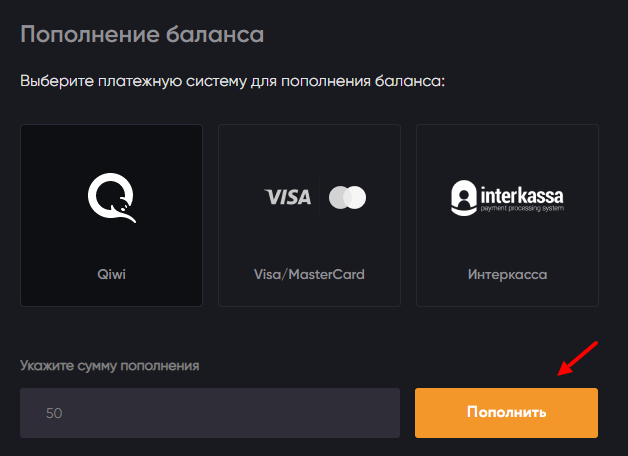 Пополнение баланса