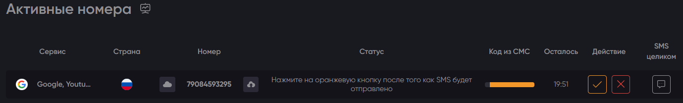 6. Во вкладке «Активные номера» вы увидите вот такую панель.