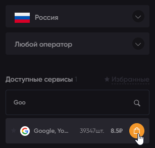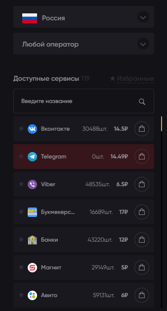С левой стороны представлена панель, где можно выбрать страну, а также сервис, для которого планируется получить смс-подтверждение.