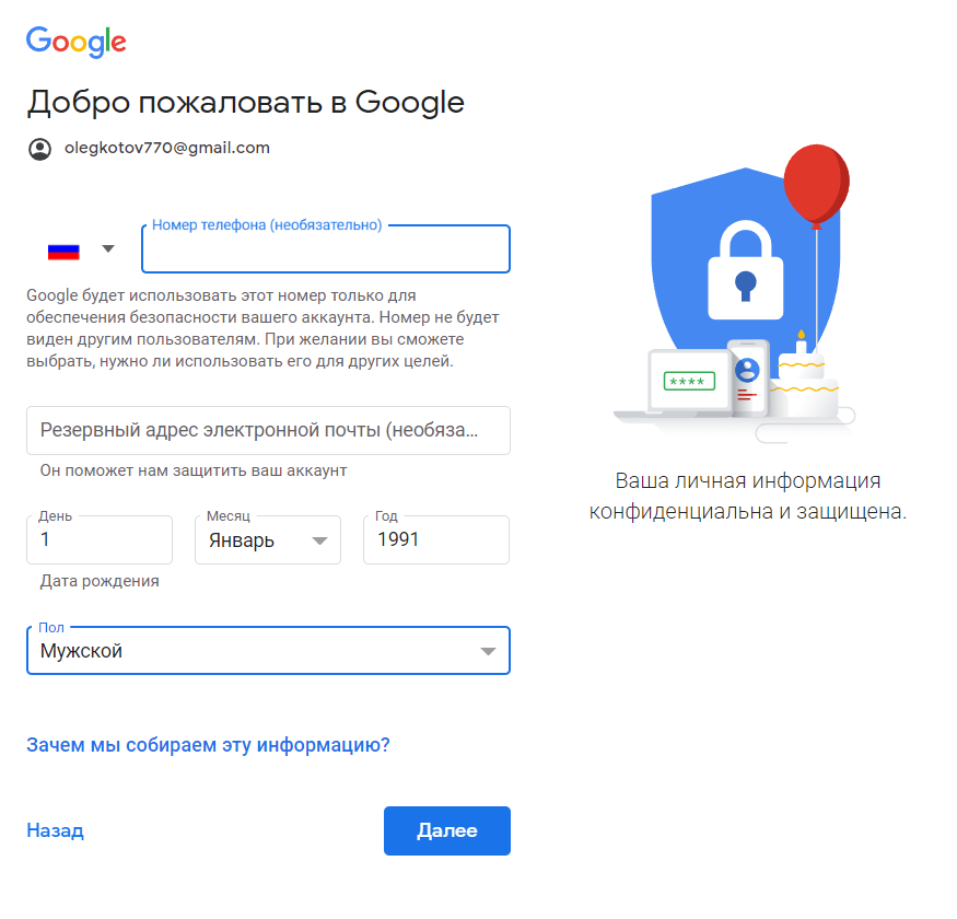 Как создать аккаунт Гугл, Ютуб и Gmail без номера телефона