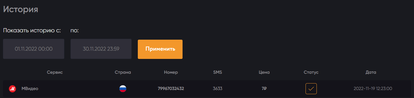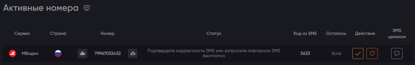 С вашего счета будет списана стоимость номера, а вам будет доступна страница для работы с номером.