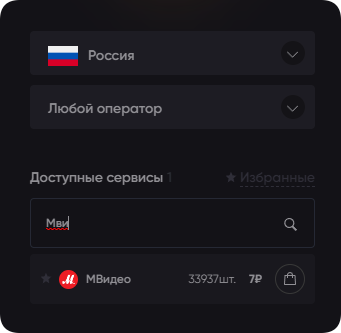 Рядом с названием есть информация о количестве доступных номеров и стоимость 1 шт.