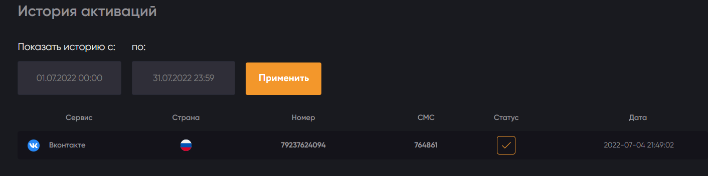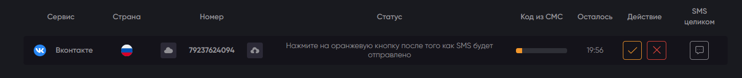 После всех манипуляций с номером вернитесь на платформу 365SMS и вновь кликнете на оранжевую галочку.