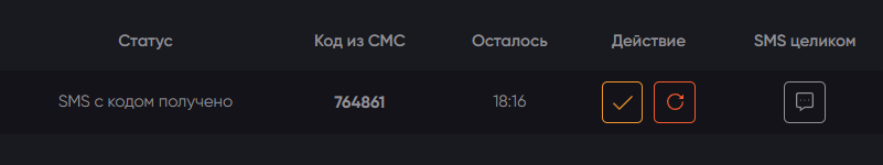 Затем нажимаем оранжевую галочку, чтобы сервис смог принять код подтверждения.