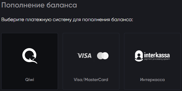Для пополнения можно использовать любой удобный метод – электронный кошелек Qiwi, банковскую карту Visa/MasterCard или же сервис Интеркасса, который содержит множество вариантов пополнения.