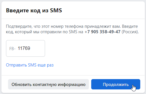 Код нужно будет ввести в соответствующее окошко, которое высвечивается на странице регистрации в Фейсбуке.