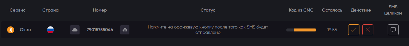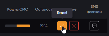 Возвращаемся к платформе 365SMS и кликаем по оранжевой галочке «Готов!». Таким образом, вы даете команду сервису, что номер готов к приему верификационного кода.