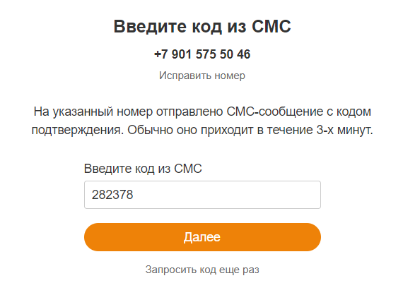 Смс придет в автоматическом режиме в течение нескольких минут. Как только оно поступит, вы увидите комбинацию цифр в поле «Код из СМС». Скопируйте его и введите на странице регистрации Ok.