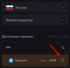 После этого обратитесь к левому меню, найдите Telegram и нажмите на кнопку покупки.