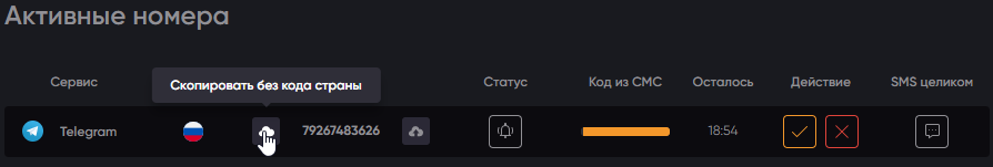 Переходим ко вкладке активных номеров и завершаем работу с номером.