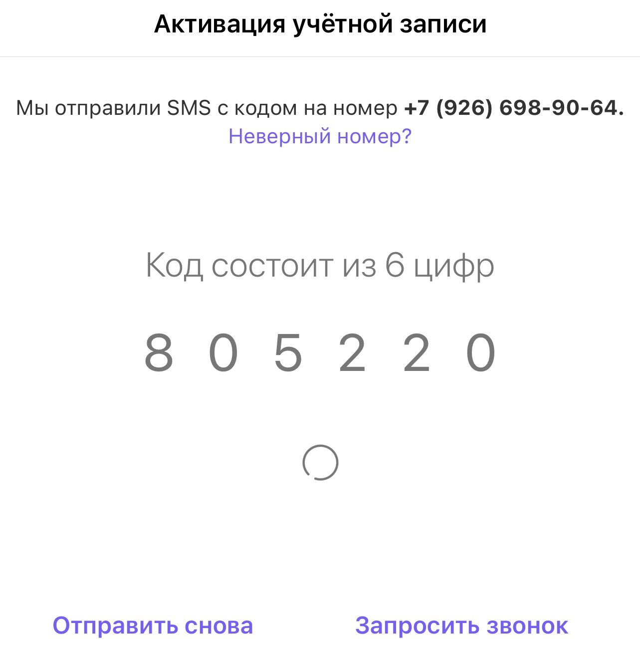 Как только код придет, в соответствующей колонке вы увидите комбинацию из цифр, которую нужно ввести в приложении Viber.