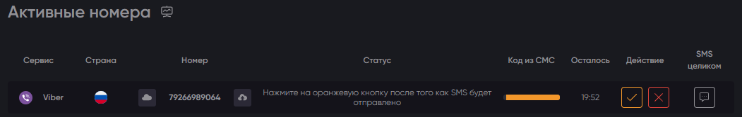 Копируем номер или вводим вручную, а затем нажимаем на оранжевую галочку. Таким образом вы даете команду сервису, что скоро поступит верификационное сообщение.