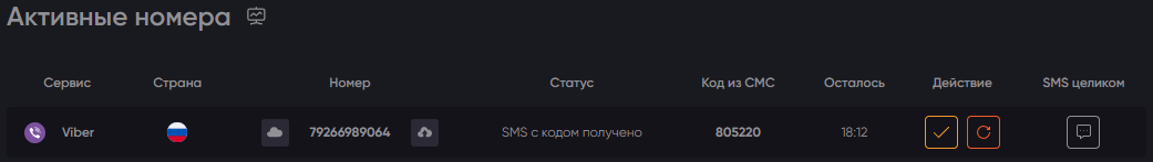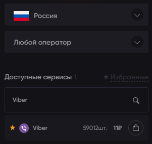 Нижнее меню – это список приложений, для которых вы можете получить виртуальный номер для приема смс. В данном случае, нас интересует Viber.