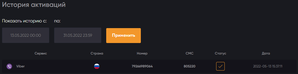 Если вам потребуется вспомнить, какой номер был использован ранее, вы можете это сделать во вкладке «История активаций».