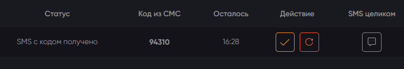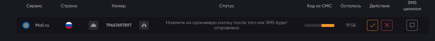 На платформе 365SMS необходимо дать команду, что номер готов принять сообщение для верификации. Кликаем на оранжевую галочку.