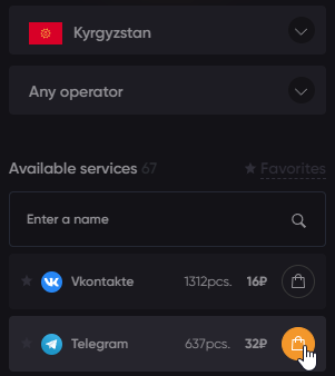 Choose the desired country, and then look in the list for the name of the messenger for which you want to buy a number.