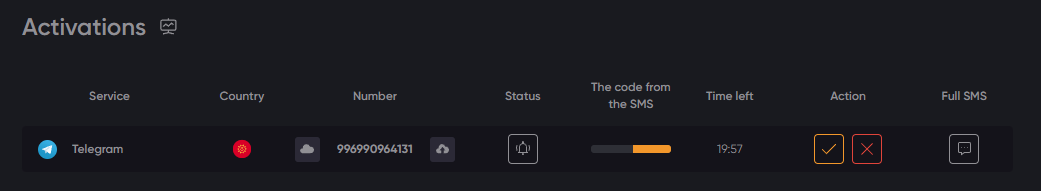 Go back to the service and click the "Ready" button in the form of an orange checkmark, after which the platform will be ready to accept the confirmation code.