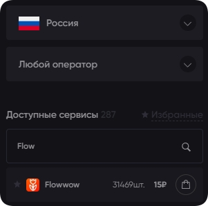 Из перечня слева выберите нужный веб-ресурс. Посмотрите на цифры справа от названия – они говорят о количестве свободных виртуальных номеров для Flowwow и цене в рублях.