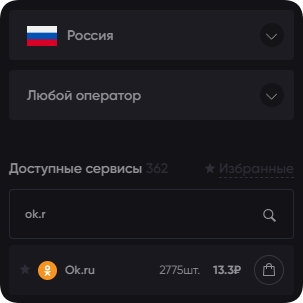 С помощью поисковой строки или вручную найдите в списке веб-ресурс «ОК.ru». Справа от названия вы увидите количество свободных номеров в штуках и цену в рублях.