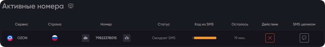 Купленный виртуальный номер телефона для ОЗОН действует в течение 20 минут, при этом количество сообщений не лимитируется. Если СМС с кодом не пришло, можно запрашивать повторы без ограничений.