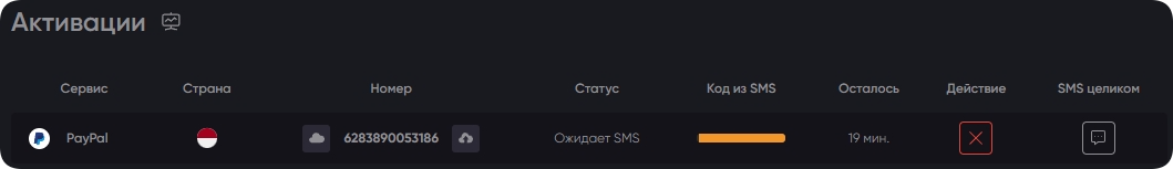 Приняв СМС от PayPal в разделе активных номеров, введите код и нажмите на кнопку подтверждения. Готово!