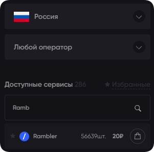 — в колонке в левой части экрана выберите веб-ресурс Rambler. Числа справа от названия говорят о количестве свободных номеров и стоимости в рублях;