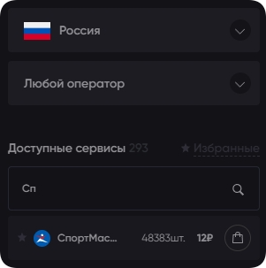 При необходимости, выберите страну, которой будет принадлежать телефонный номер. Это позволяет выбирать наиболее выгодные цены, наибольшее количество свободных номеров. Также, у нас доступны разные сотовые операторы.