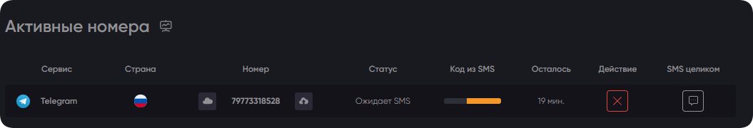 Одноразовый онлайн-номер телефона для Telegram выдается на 20 минут. Этого достаточно, чтобы пройти регистрацию, принять СМС от Телеграм без спешки и в неограниченном количестве.