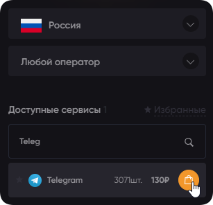 Выберите страну из списка в левой части экрана, сотового оператора по желанию, а также нужный сервис – Телеграмм.