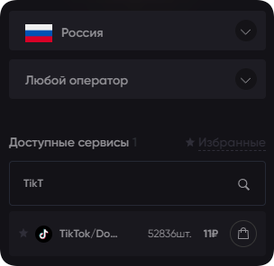 Второй шаг – это выбор параметров номера для регистрации на ТикТок. Наш сервис позволяет подобрать нужную страну, сотового оператора. Обратите внимание, что количество свободных номеров и цена зависят от этих двух параметров.