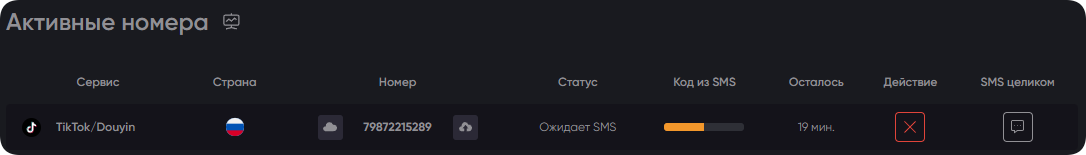 После успешной регистрации необходимо закончить рабочую сессию с онлайн-номером для ТикТок, выбрав раздел «Завершить работу с номером». Виртуальный номер отправится в архив, где его можно найти в любой момент.