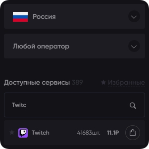В перечне доступных веб-ресурсов найдите Twitch или введите это наименование в поисковую строку. Убедитесь, что имеются свободные номера, а цена вас полностью устраивает.