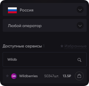 В колонке «Доступные сервисы» найдите Wildberries. Цифры справа от названия указывают количество свободных номеров и цену в рублях.
